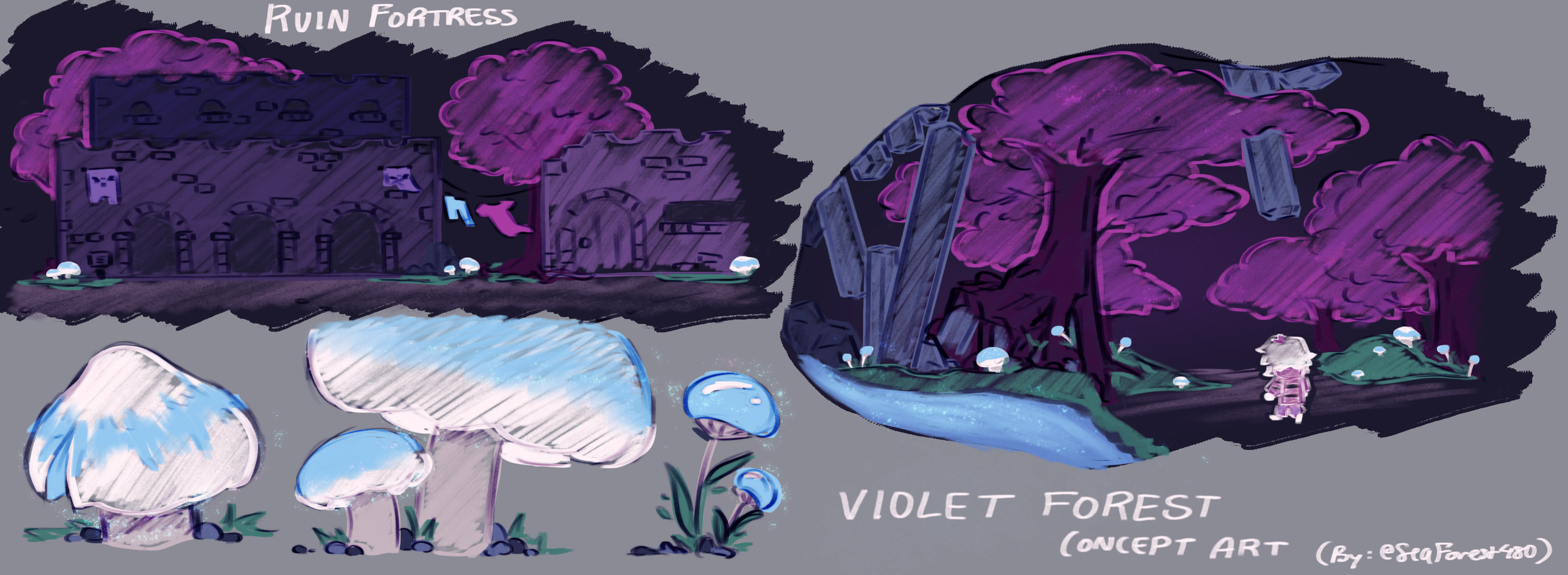 Worked as a level and character concept 2D Artist — worked on design render for a level boss, “Game Over” pixel art sequence, level designs for 2 areas.